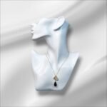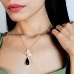 The Eternal Grace Pendant beautifully blends timeless charm with modern sophistication. Featuring a dainty golden chain, this piece highlights a graceful butterfly adorned with luminous white detailing, symbolizing transformation and freedom. A striking black teardrop stone dangles below, adding depth and elegance to the design. Perfect for both everyday wear and special occasions, this pendant is a statement of beauty, strength, and refined style.